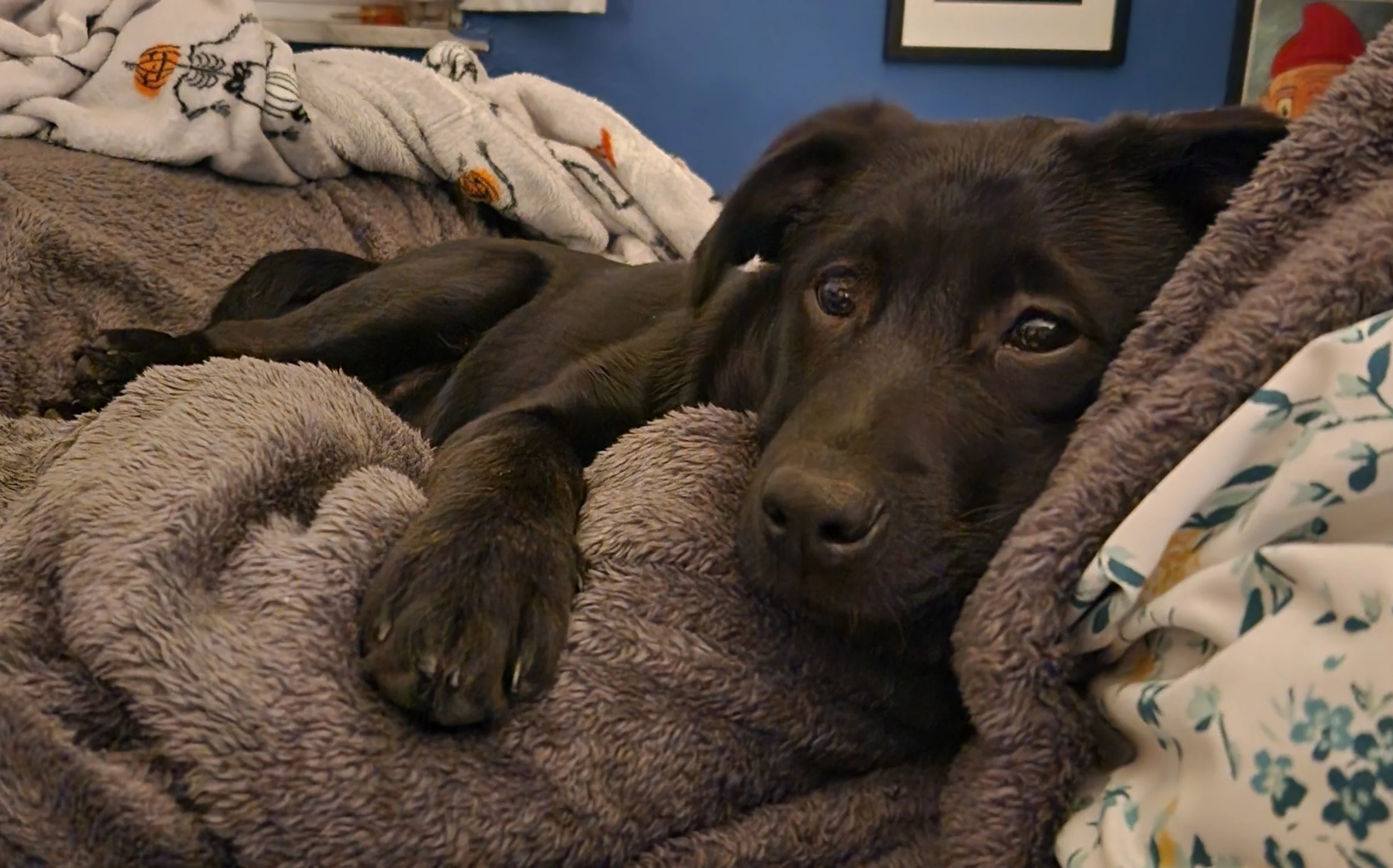After a few weeks of scouring the internet, my husband found a family with some border collie/labrador puppies that we reached out to and were able to adopt one. We were told she was 8 weeks old but the math didn’t math on that one and we realized she was barely 7 weeks old, not a huge difference technically but a major one in puppy development. On her first night we let her sleep in the bed with us to let her feel comfortable and warm since she was just a little baby pulled away from her mom and siblings but at 5am we made a discovery. Fleas. FLEEEEEAAAASSSSSS! She came from a farm so it’s not all that surprising for her to have fleas but the people she came from must not have realized it and as a reminder we were all just snuggled up in the bed. We sprang into action. We were making emergency flea comb and shampoo orders for delivery, we were putting this brand new puppy who didn’t know a damn thing about us yet through the trauma of her first bath, the bed had to be stripped and everything washed and vacuumed. As far as first puppy days go, it wasn’t the best.